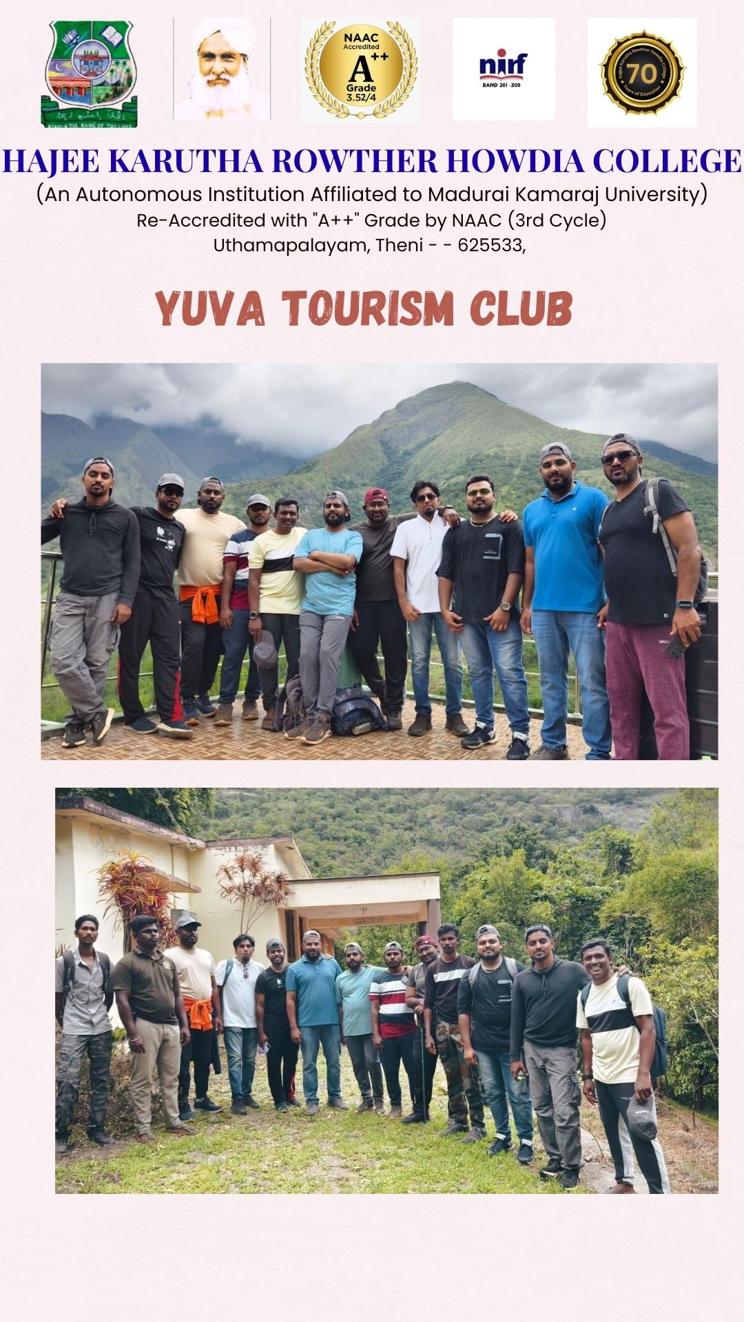 A group of eleven men teaching staff of Hajee Karutha Rowther Howdia College, Uthamapalayam undertook a trekking from Kurangini to Sambalaru located at the foothills of the Western Ghats in Theni district, covering a distance of 5 k.m. During the trek, they visited Samabalaru Falls, Kottakudi River, Kottakudi Dam and several hidden falls. They passed through the lush green wild pastures, shola patches, cascading waterfalls and breathtaking scenic views. A watchtower located along the trekking route provided panoramic views of the famous Kolukkumalai hilltop and nearby peaks. The trek instilled a spirit of adventure among staff members. On their way they got themselves learned the ways to protect the forest instructed by the forest officials who accompany them.