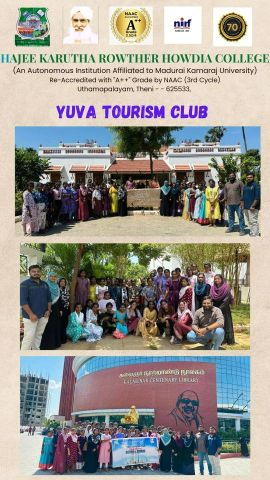 The Yuva Tourism Club of Hajee Karutha Rowther Howdia College organized a one-day field trip for women’s students on the theme ‘From Excavation to Civilization: Field Visit to Keezhadi and Madurai’ on 21.08.2025. A team of 47 students, along with four faculty members took part in the trip. The team visited the Archaeological Museum at Keezhadi in Sivagangai District and the Kalaingar Centenary Library located in Madurai which is one of the largest libraries in Tamil Nadu. The trip aimed to create awareness about Archaeology and Tamil civilization, as well as to help students in understanding the role of libraries in the preparation of Competitive Examinations and Research. The trip provided the students with both educational and experiential learning opportunities for the students.