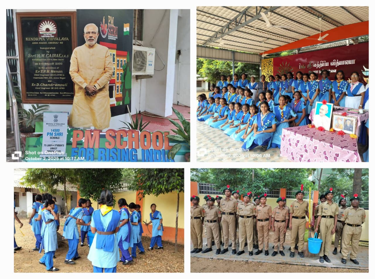 On 2nd October 2025, Kendriya Vidyalaya, Annanagar, Chennai organized a Cleanliness Drive in the school campus as part of Swachh Bharat Diwas. Around 50 NCC, Scouts & Guides students participated enthusiastically in the drive and took out a rally within the GPRA Campus, Thirumangalam, Chennai, spreading awareness on cleanliness and civic responsibility. Indiatourism Chennai joined the initiative and encouraged the students by distributing participation certificates and Incredible India souvenirs. Held under the framework of Special Campaign 5.0, the program paid tribute to Mahatma Gandhiโs vision of a clean India and inspired young students to embrace cleanliness as a civic duty.