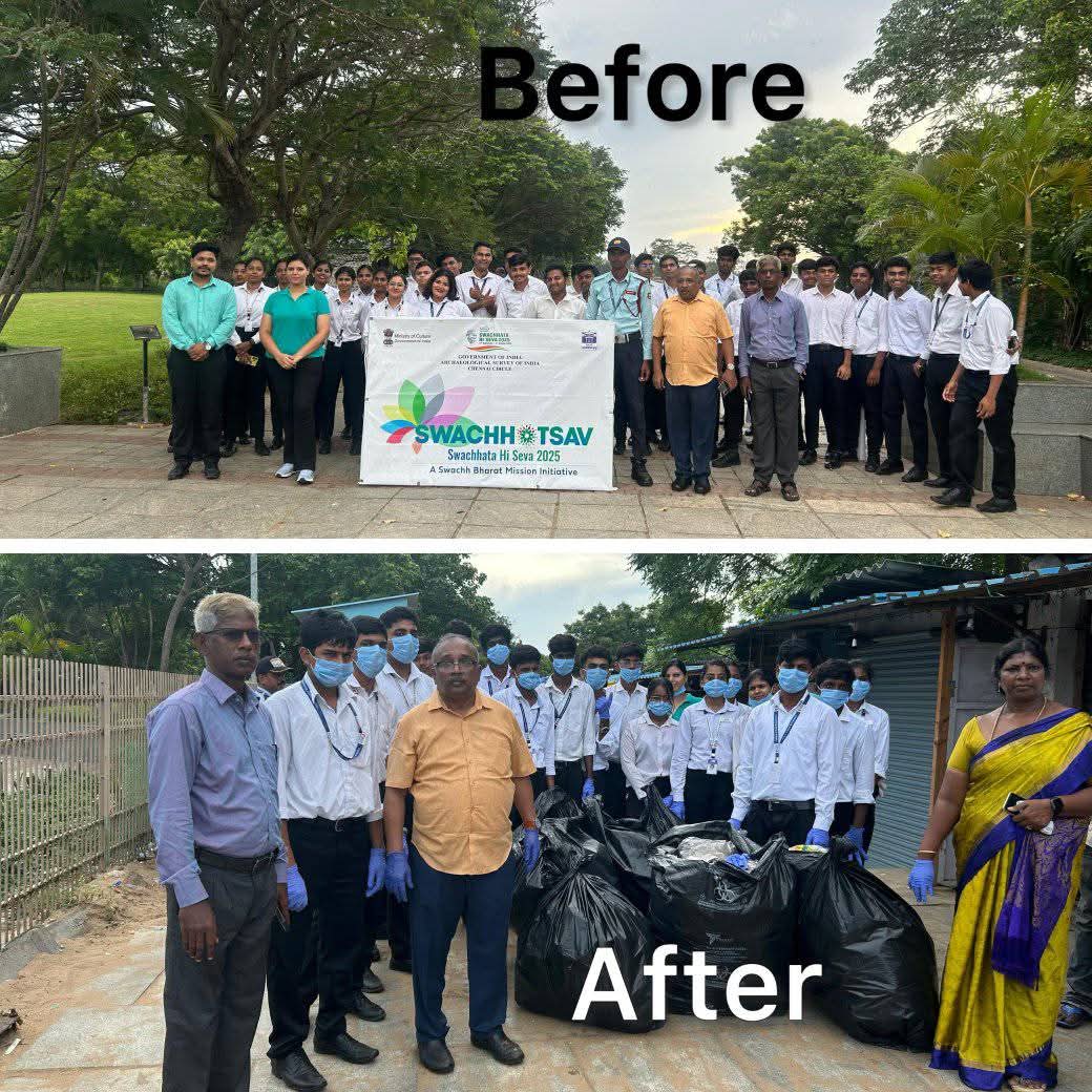 Swachhata Pakhwada at Mamallapuram. As part of the Swachhata Pakhwada Calendar of the Ministry of Tourism, Indiatourism Chennai organized a special cleanliness drive on 29th September 2025 at the iconic Shore Temple, Mamallapuram. In collaboration with Mamallapuram Municipality, Archaeological Survey of India (ASI), and IHMCT Taramani, Chennai, the campaign was inaugurated by Smt. Valarmathi Yesvanthrao, Chairperson, Mamallapuram Municipality, in the presence of the Regional Director (South), Indiatourism Chennai, ASI officials, and Indiatourism team. Over 40 IHM students and visiting students from Sri Umamaheswar High School, Kurnool, enthusiastically joined hands to clean the temple environs and the pathway to the beachfront. Together, we are working towards clean, sustainable, and responsible tourism.